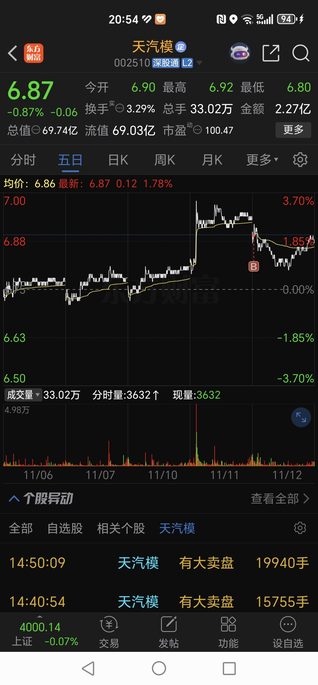 $天汽模(SZ002510)$ 昨天异动把我骗进来了,结果进来就被套