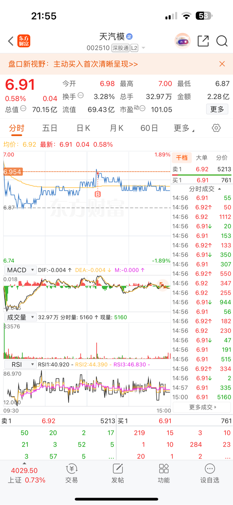 $天汽模(SZ002510)$ 兄弟们抱歉,因为我回来的缘故,今天又埋我了,这次亏10个点我就割肉,忍一忍我割肉准涨