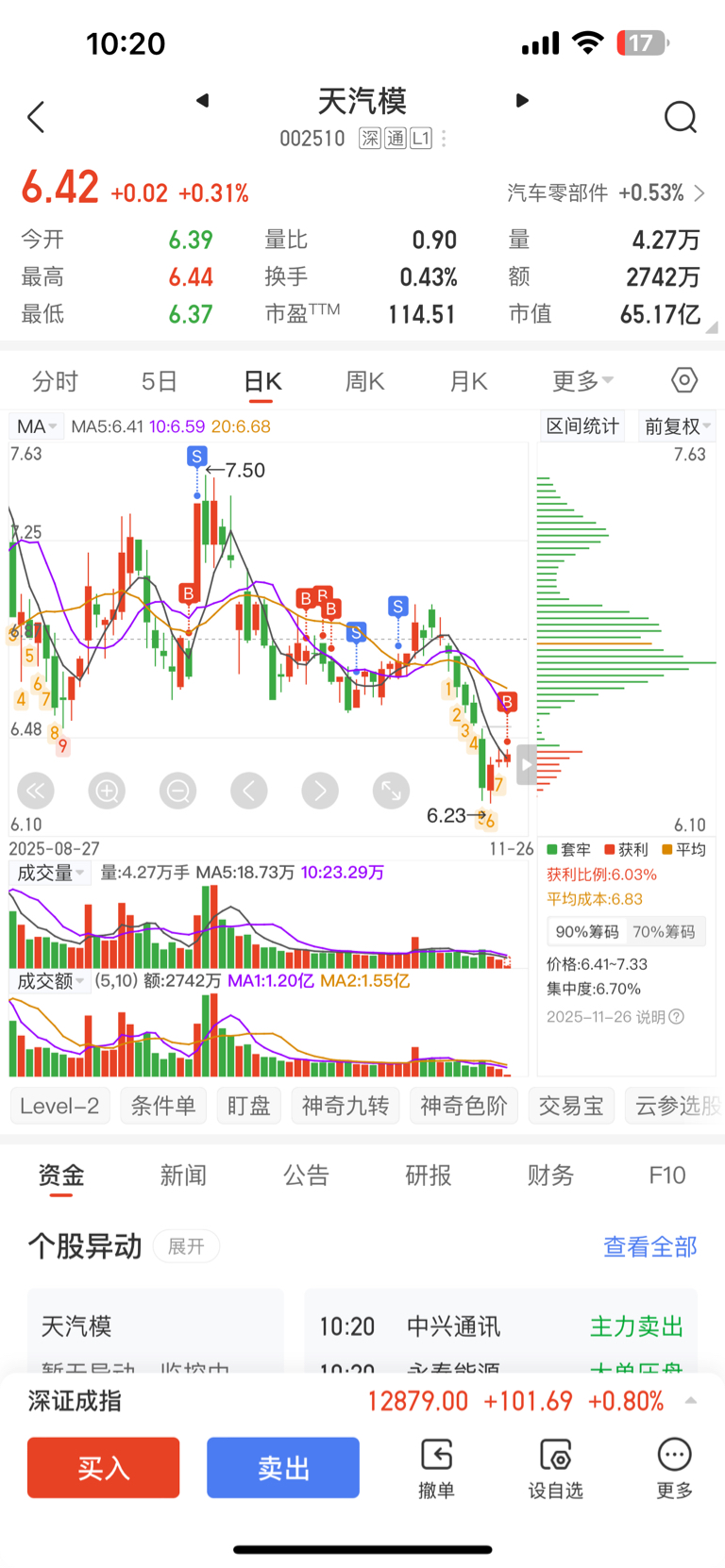 $天汽模(SZ002510)$ 我又来了,我每次来都能赚钱,大家放心我是福星