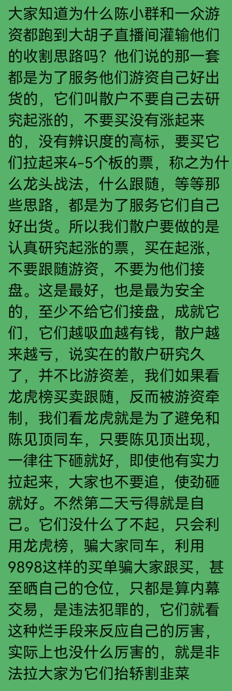 郑重声明:用户在财富号/股吧/博客等社区发表的所有信息(包括但不限于文字、视频、音频、数据及图表)仅代表个人观点,与本网站立场无关,不对您构成任何投资建议,据此操作风险自担。请勿相信代客理财、免费荐股和炒股培训等宣传内容,远离非法证券活动。请勿添加发言用户的手机号码、公众号、微博、微信及QQ等信息,谨防上当受骗!