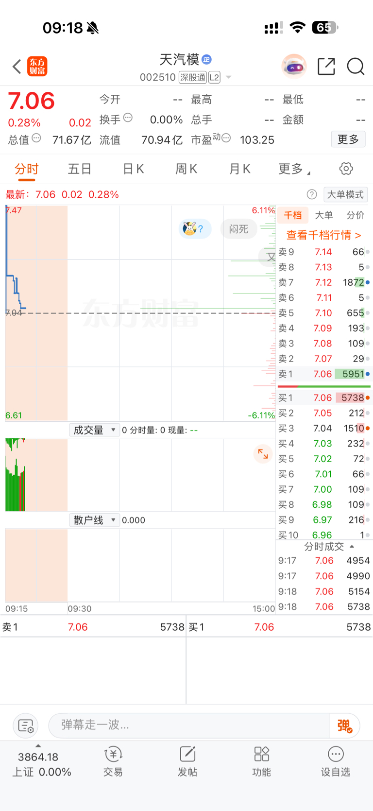 $天汽模(SZ002510)$ 走了走了 主力垃圾 溢价都不给 看样子昨天出货了涨停板出的