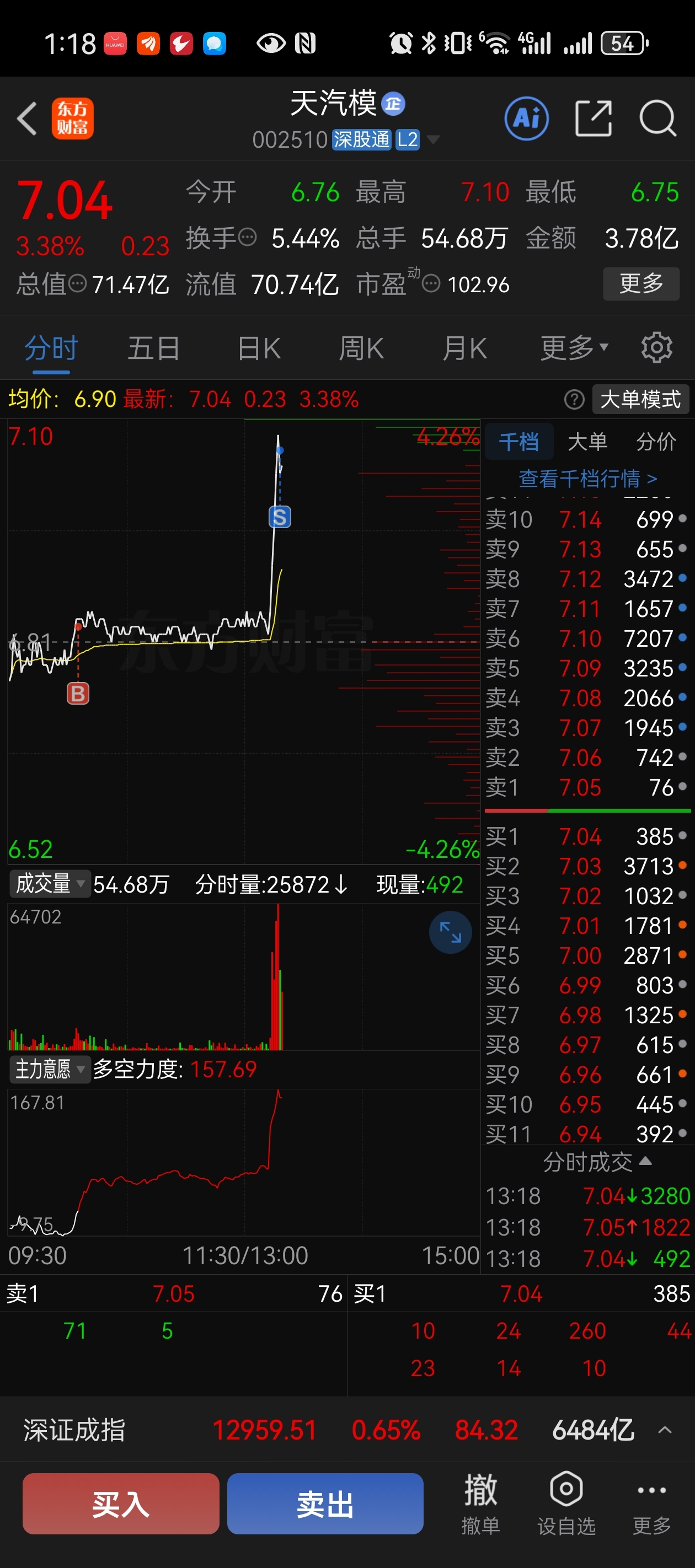 $天汽模(SZ002510)$ 先把套仓卖出,要停就停吧