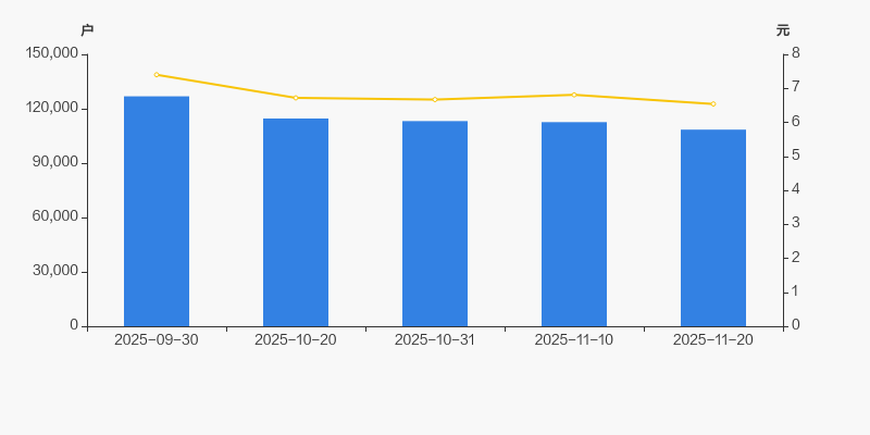 自2025年9月30日以来,公司股东户数连续4期下降,截至目前减幅为14.49%。2025年9月30日至2025年11月20日区间股价下降11.62%。