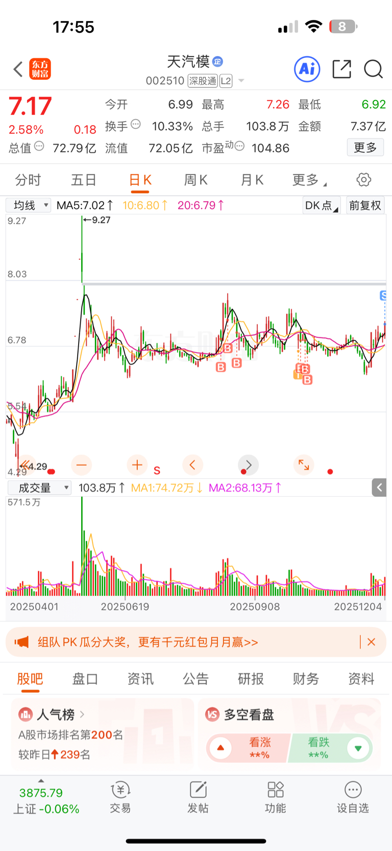 $天汽模(SZ002510)$ 拿了三个月一卖就出利好