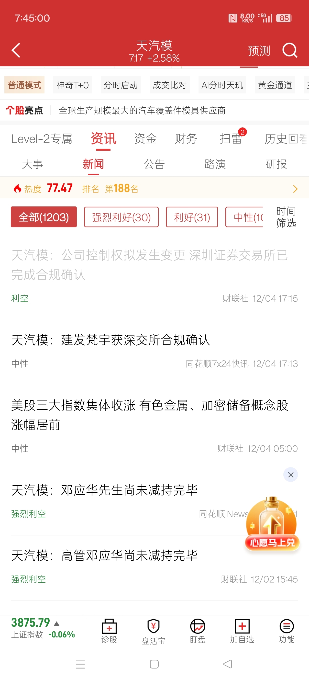 $天汽模(SZ002510)$ 为什么这个显示是利空?
