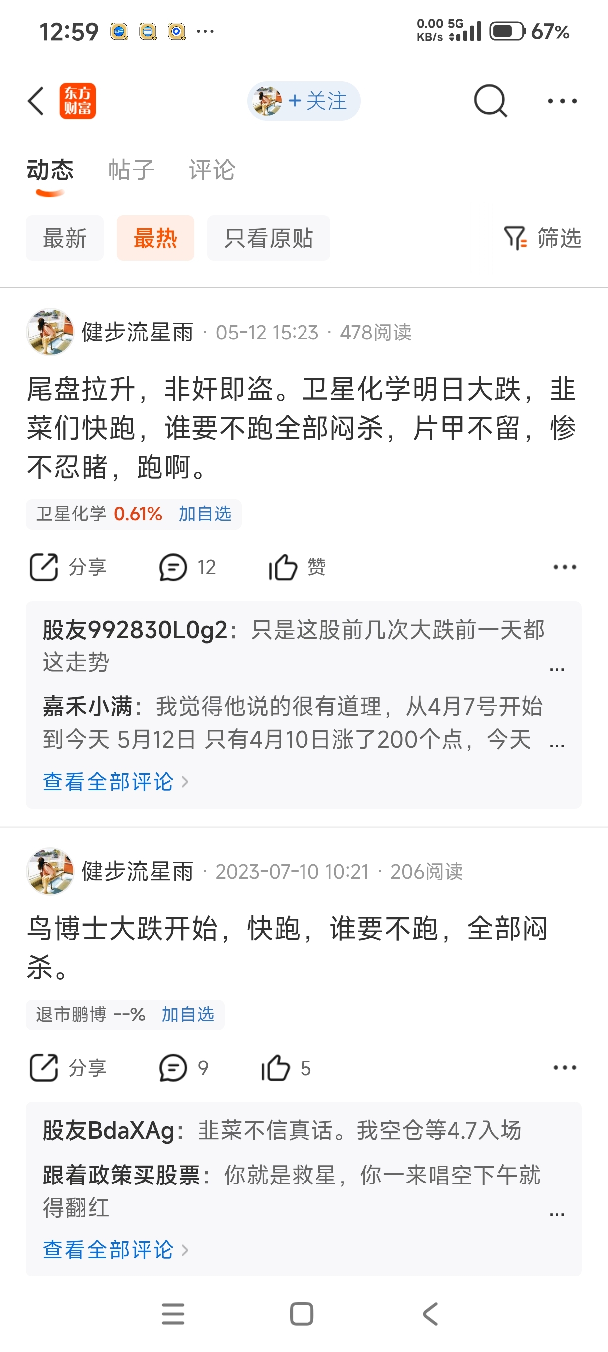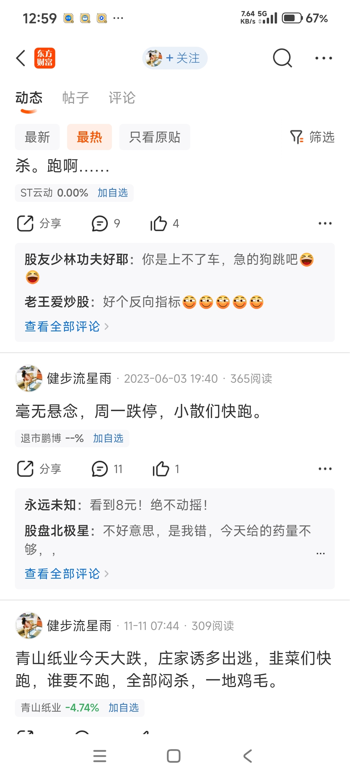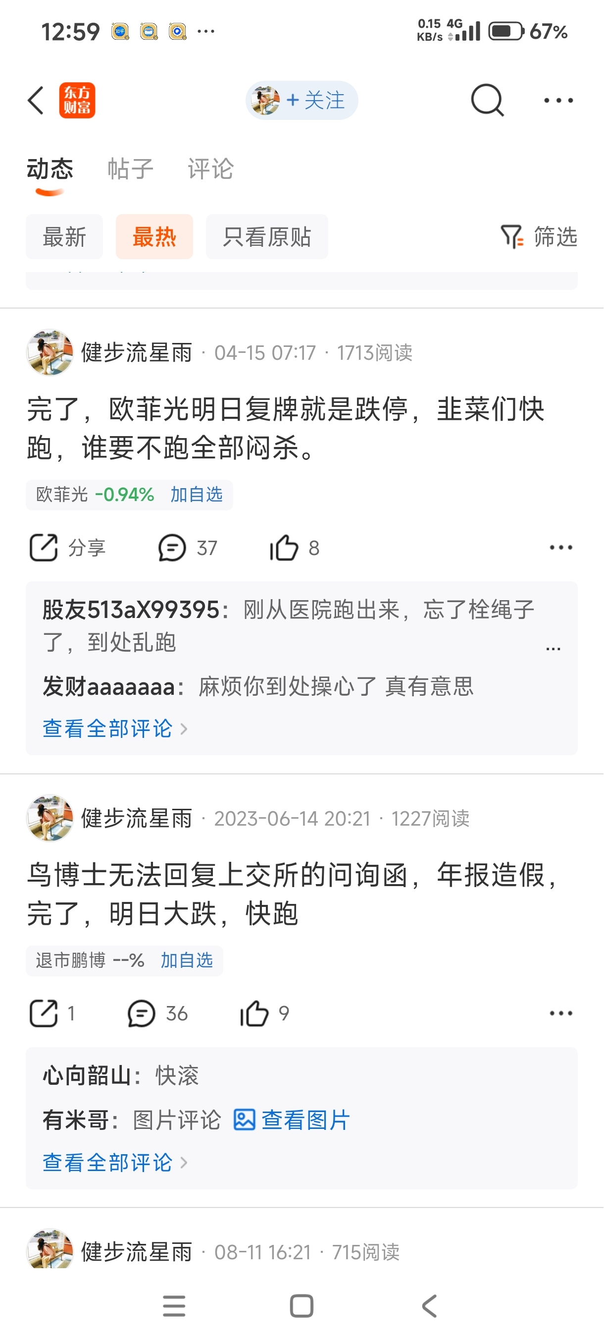 股吧里那个叫健步流星雨的人,各位兄弟请看他的主页,他是十年老韭菜,每个票都在唱空