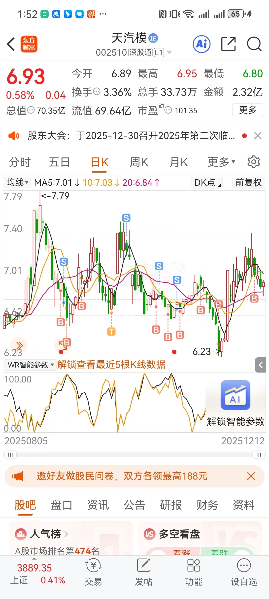 $天汽模(SZ002510)$ 经过三次加仓,已经满上了,让天汽模陪大家一起跨年!