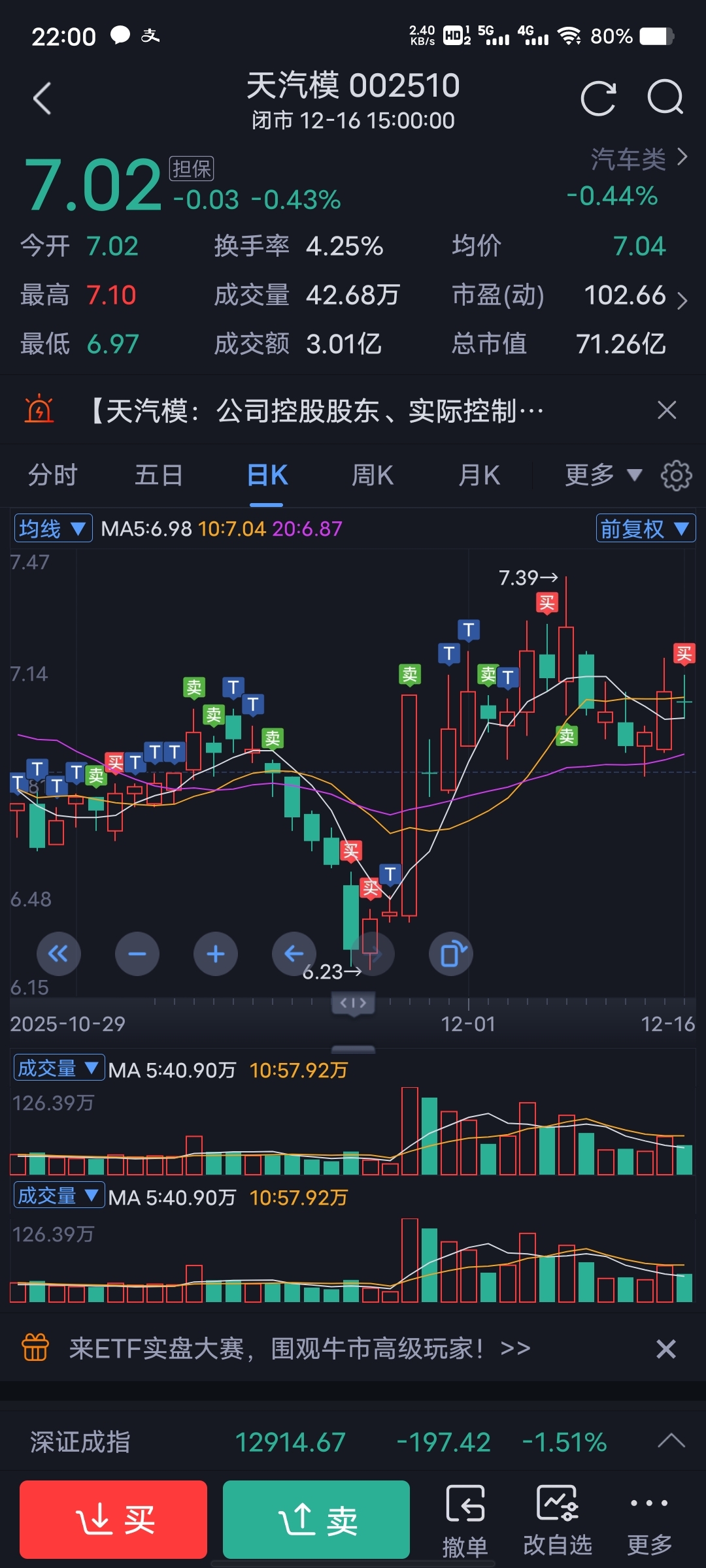 $天汽模(SZ002510)$ 有惊无险,出去玩了几天,今天刚回来就出公告