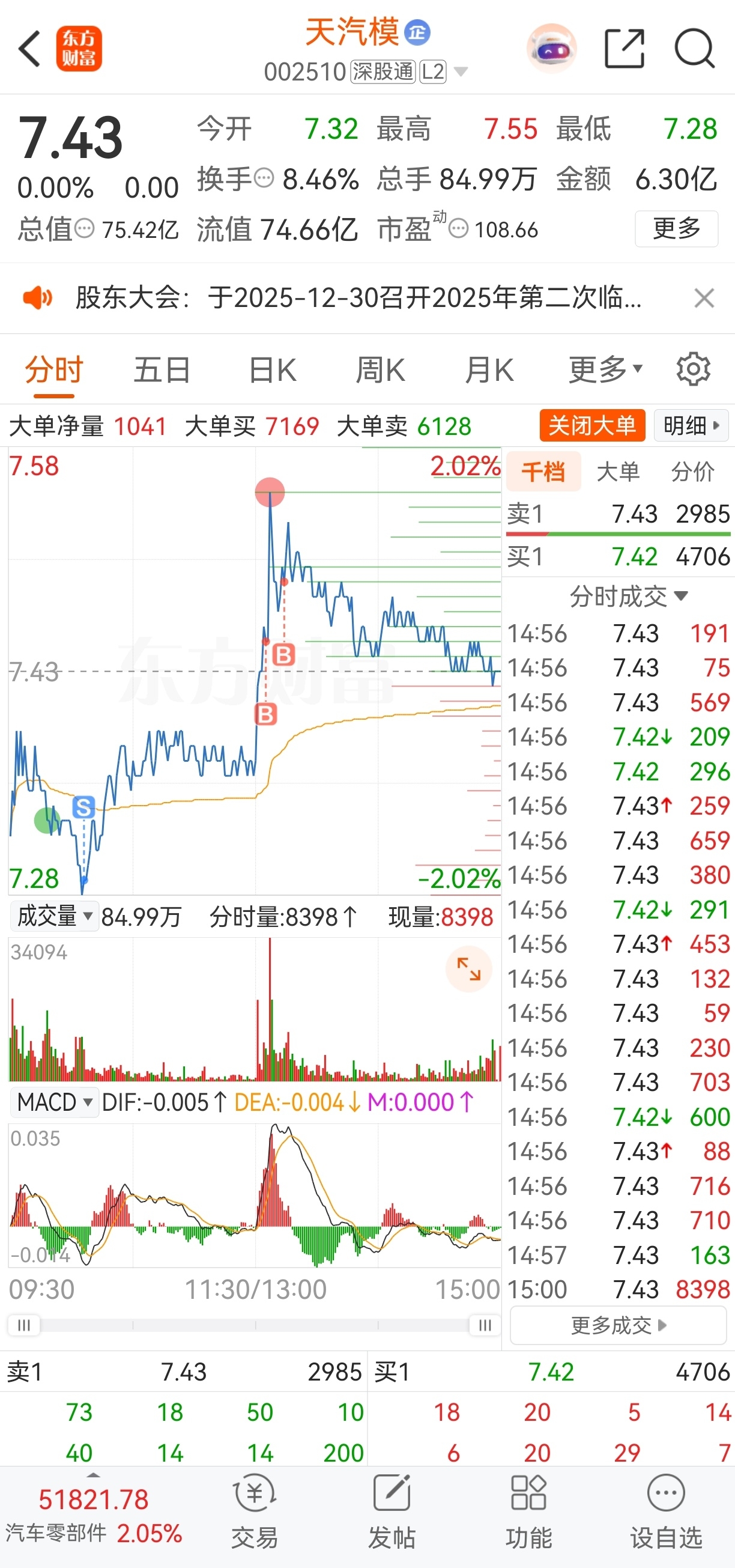 $天汽模(SZ002510)$ 杀跌追涨,宁做错不放过。