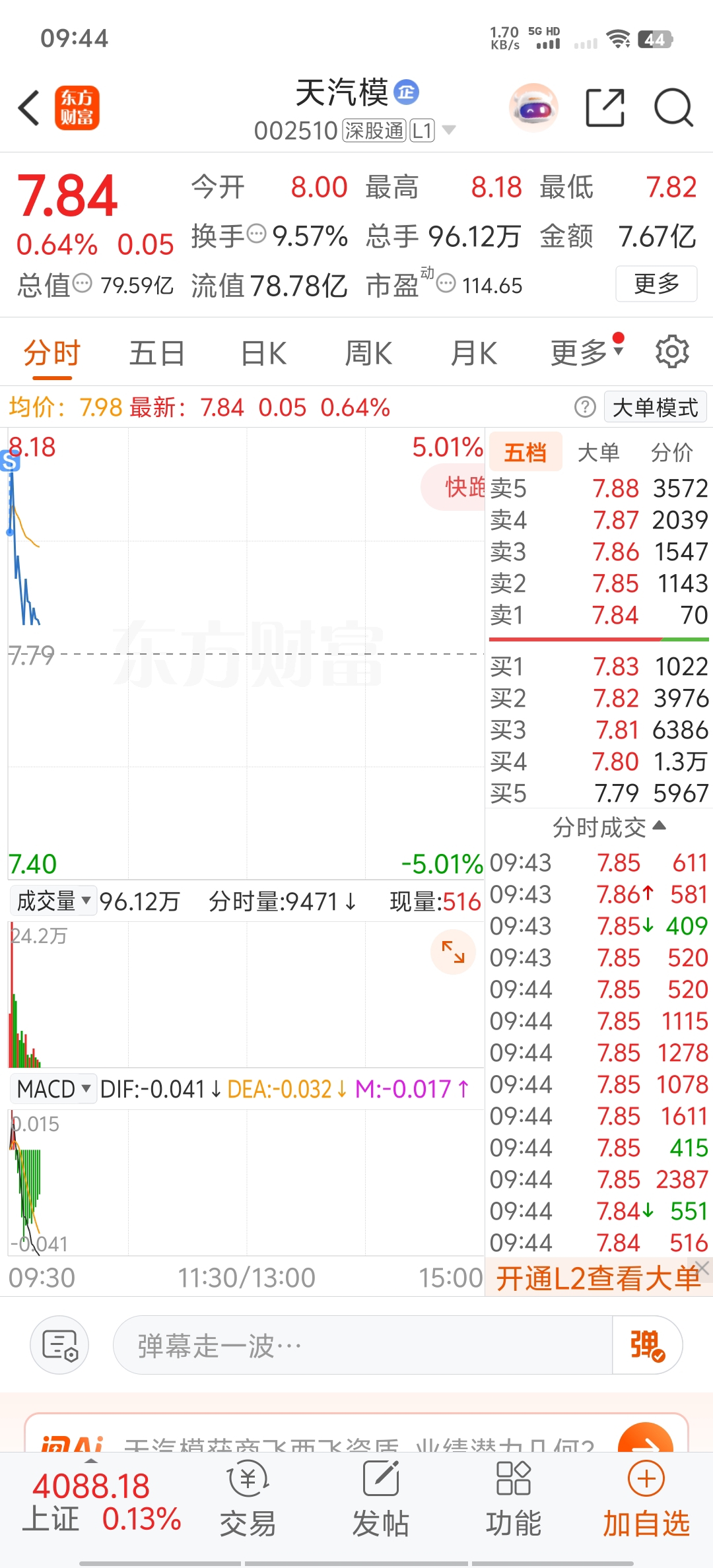 $天汽模(SZ002510)$ 这股没有连板基因,果断跑路