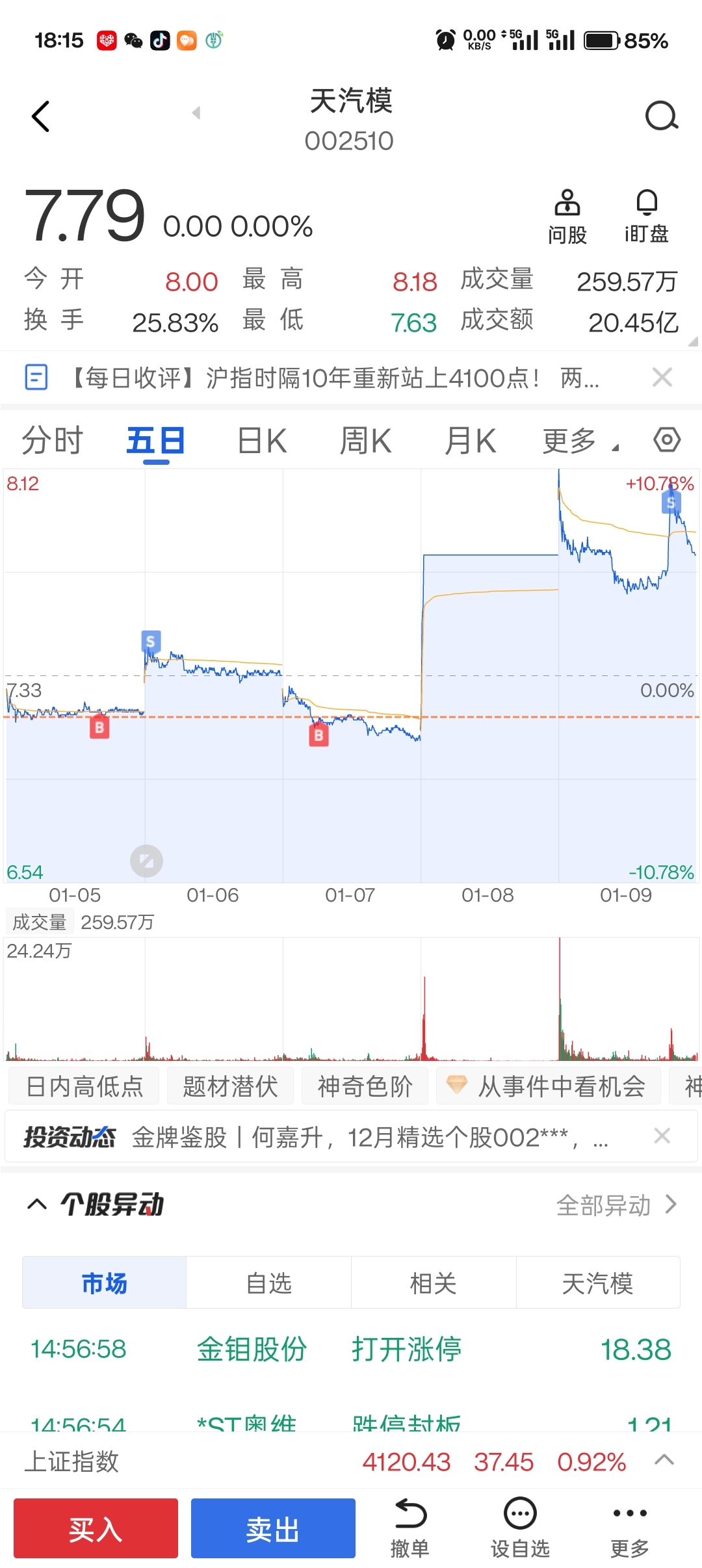 $天汽模(SZ002510)$ 我撤了!你们发财!