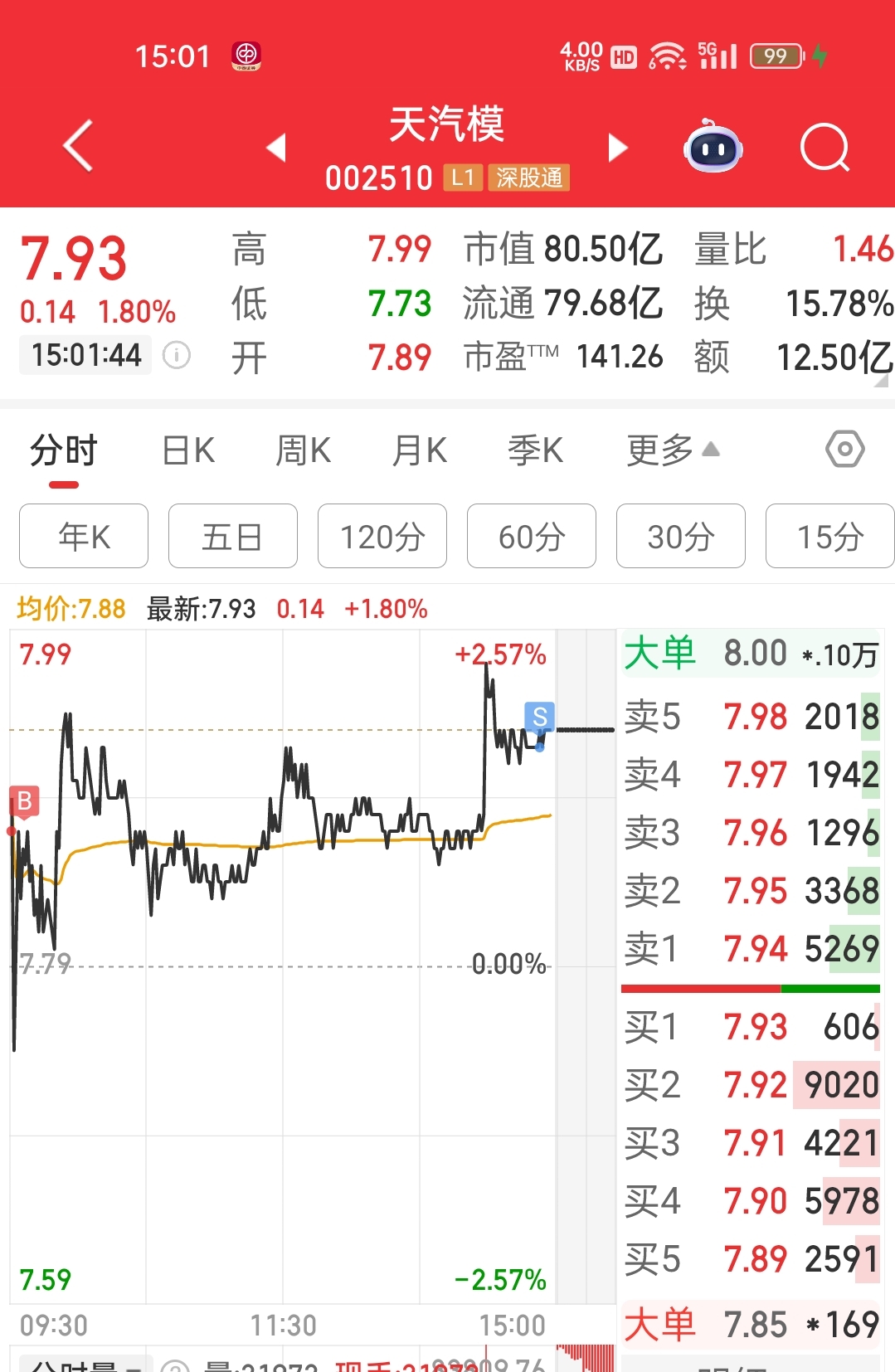 $天汽模(SZ002510)$ 我走了,祝留下兄弟发财