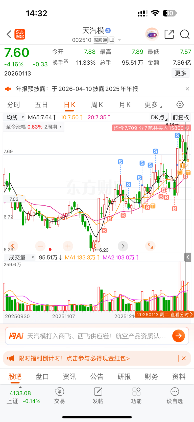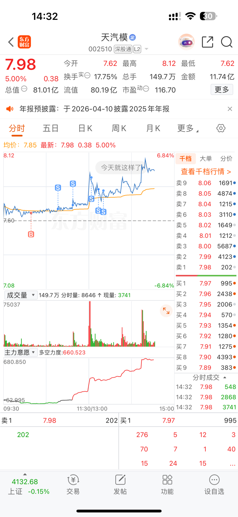 $天汽模(SZ002510)$ 今天的操作手法全乱了,大盘一跳水一通乱卖,卖到只有3成仓位了,好在昨天进的今天赚了一点,深刻反省
