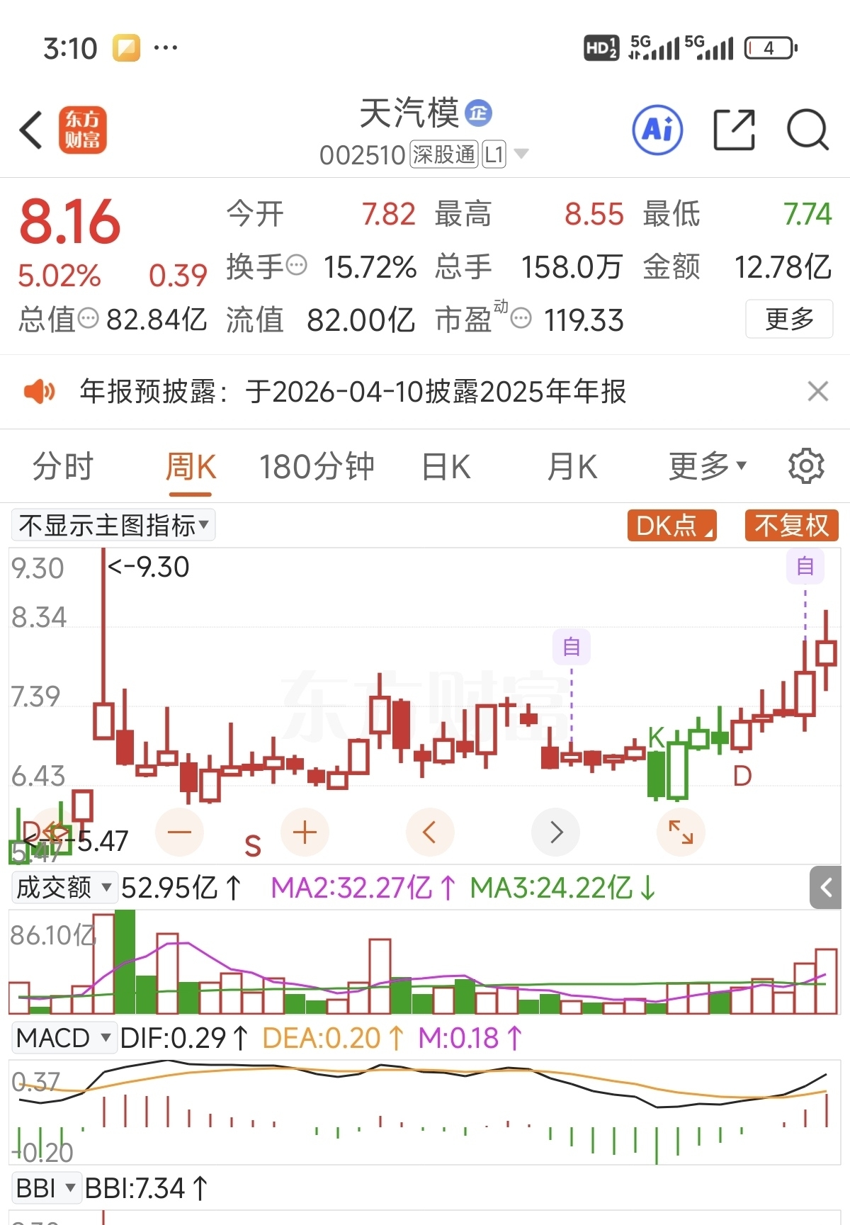 $天汽模(SZ002510)$ 周线主力连续吸筹,下周不让买了