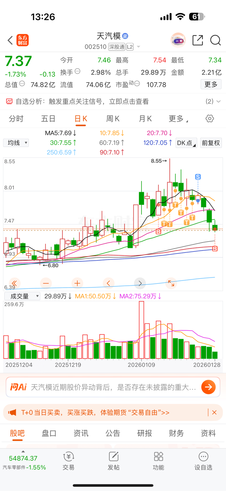 $天汽模(SZ002510)$ 前两天卖了,又买回来一点,随便玩玩了