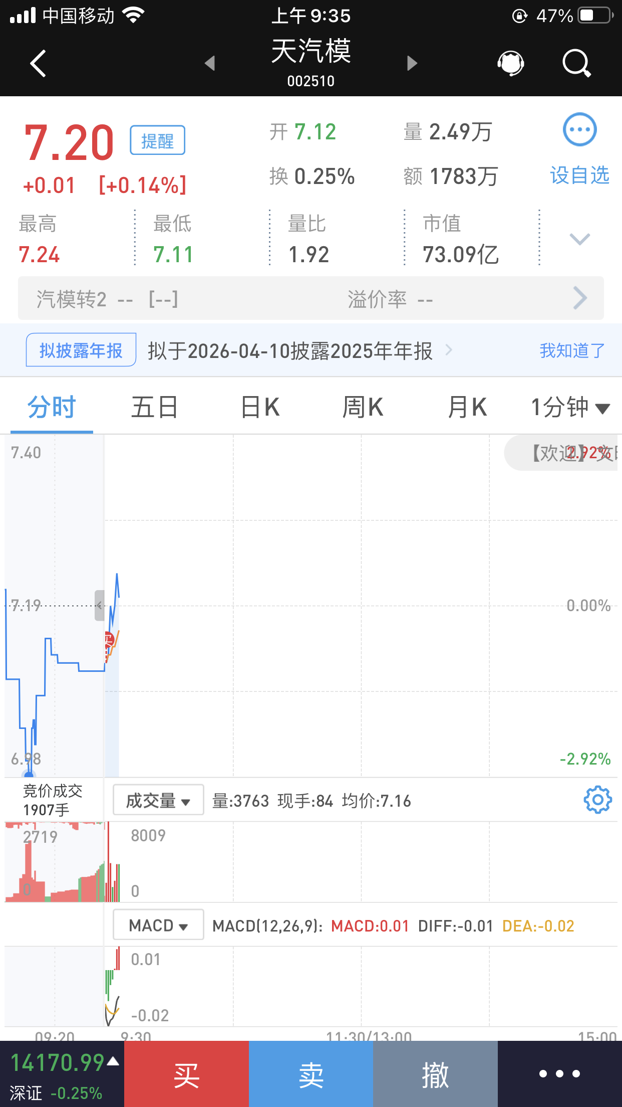 此时不加仓更待何时?天汽模最低点是7.08元,这周注定要反弹。
