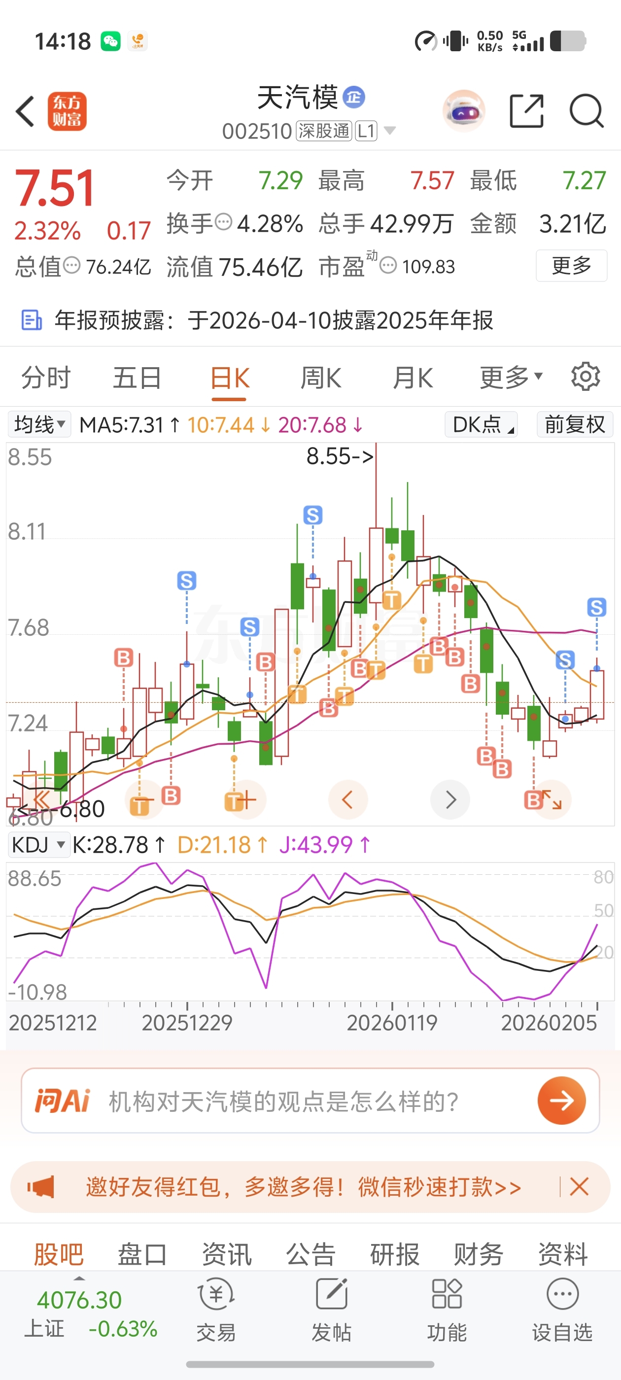 $天汽模(SZ002510)$ 今天刚卖了准备过年
