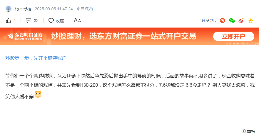 温馨提示: 1.根据《证券法》规定,禁止编造、传播虚假信息或者误导性信息,扰乱证券市场;2.用户在本社区发表的所有资料、言论等仅代表个人观点,与本网站立场无关,不对您构成任何投资建议。用户应基于自己的独立判断,自行决定证券投资并承担相应风险。《东方财富社区管理规定》