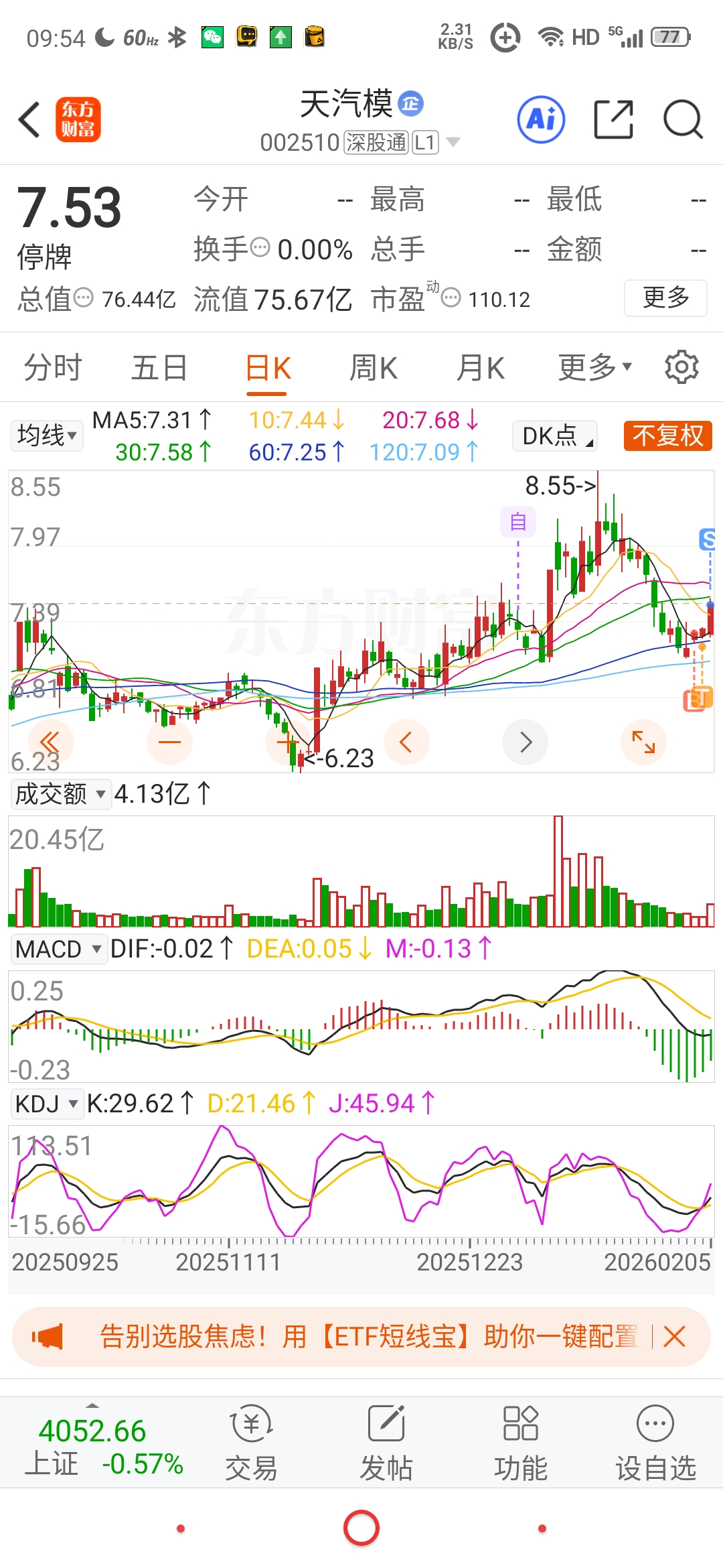 $天汽模(SZ002510)$ 后悔啊,