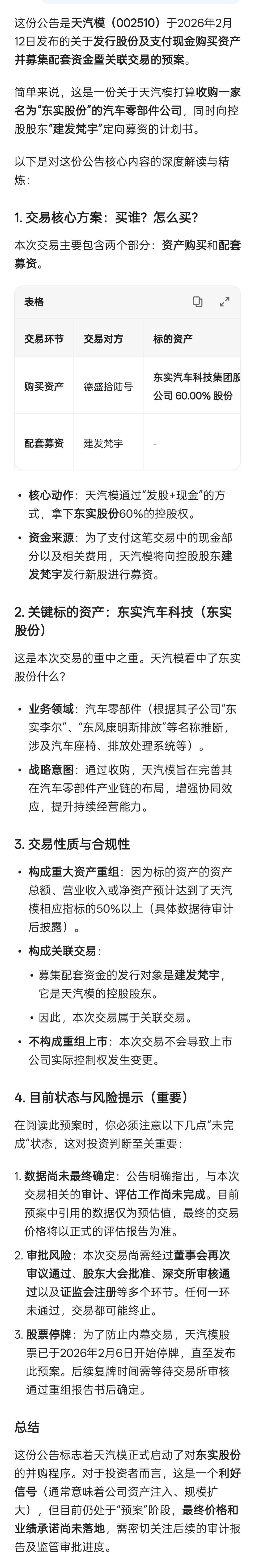 $天汽模(SZ002510)$ 公告解读
