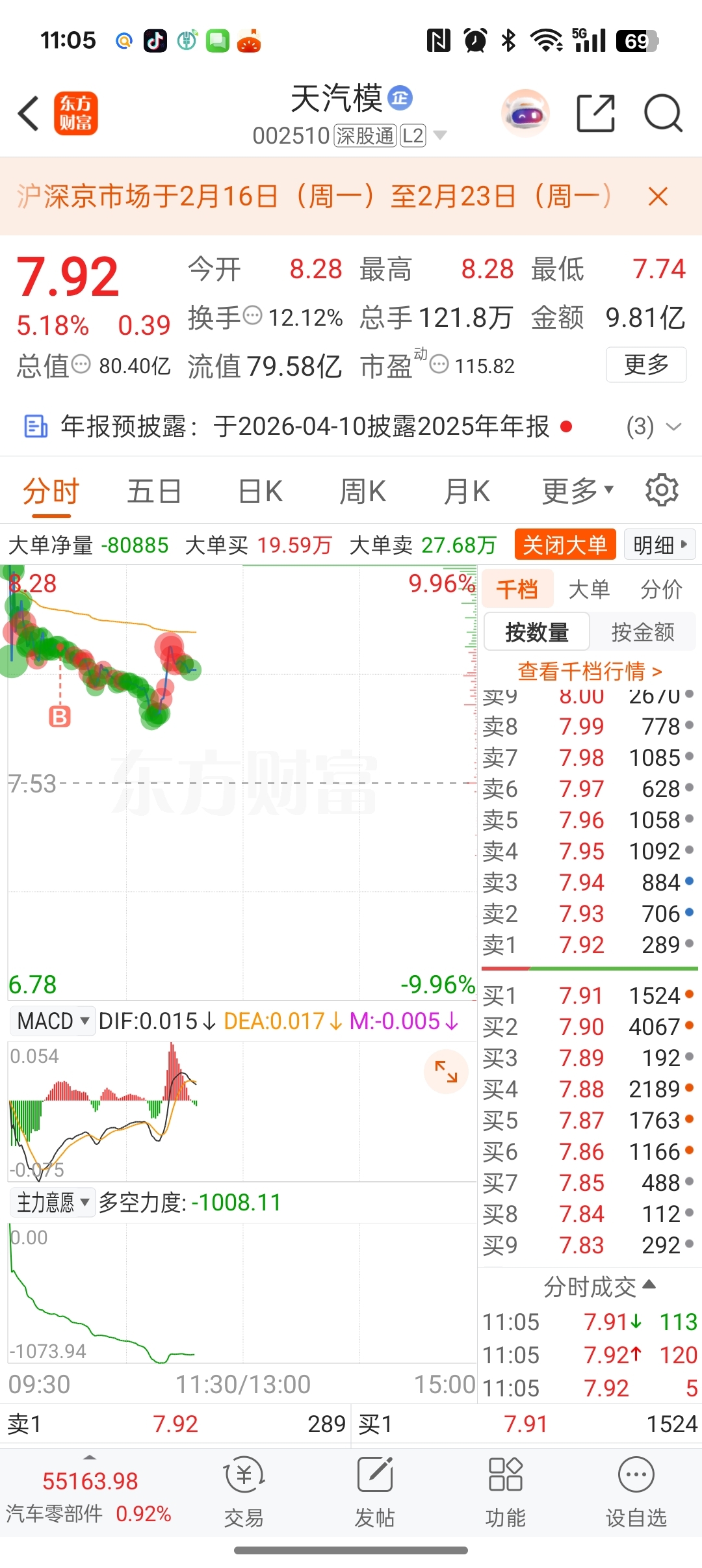 $天汽模(SZ002510)$ 吓死人 终于上车了