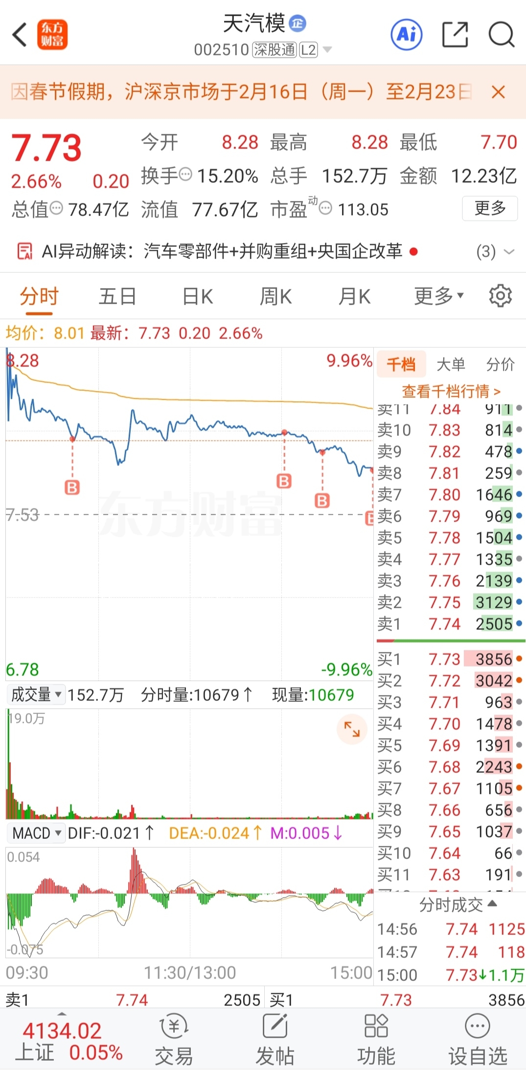 $天汽模(SZ002510)$ 参考海南矿业,假期吃面,