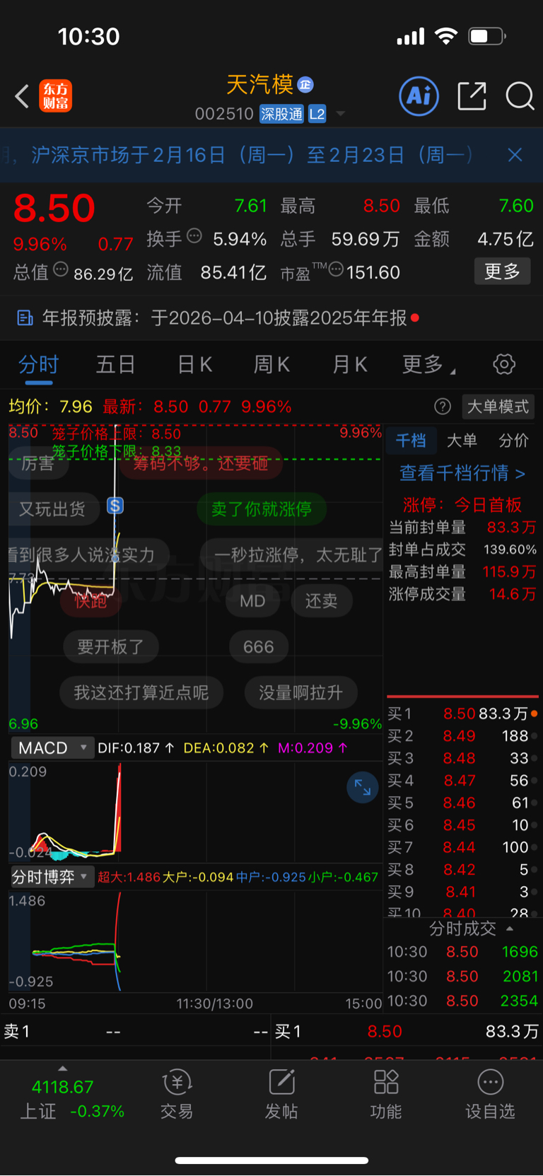 $天汽模(SZ002510)$ 我,提前挂单卖出。