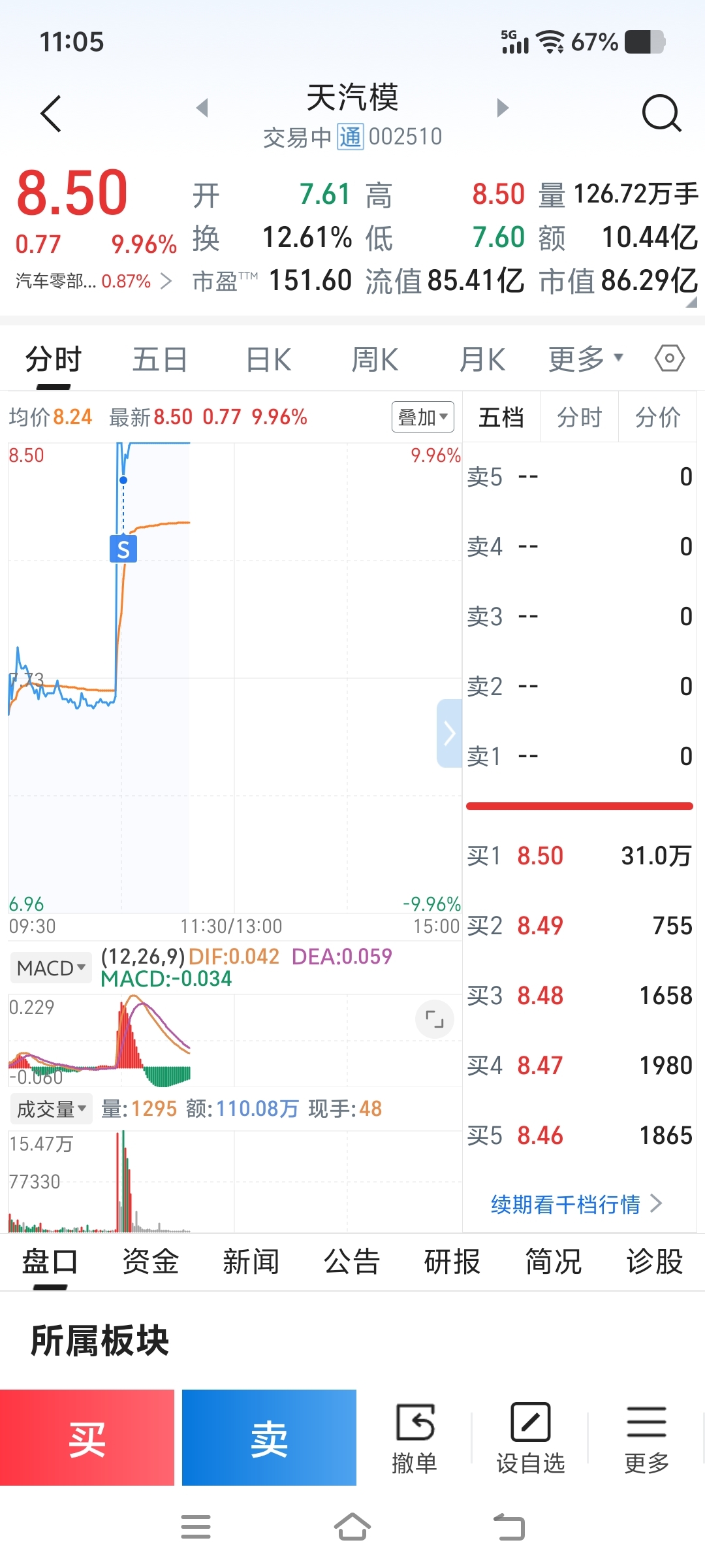 $天汽模(SZ002510)$ 我拿了一个月卖了
