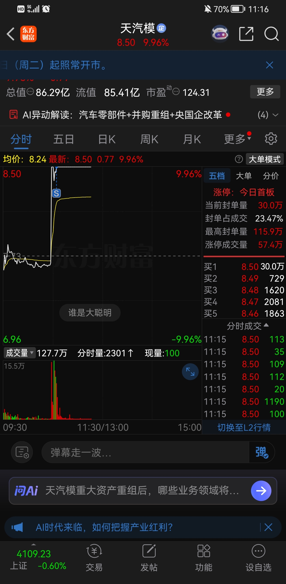 $天汽模(SZ002510)$ 走球了#炒股日记#