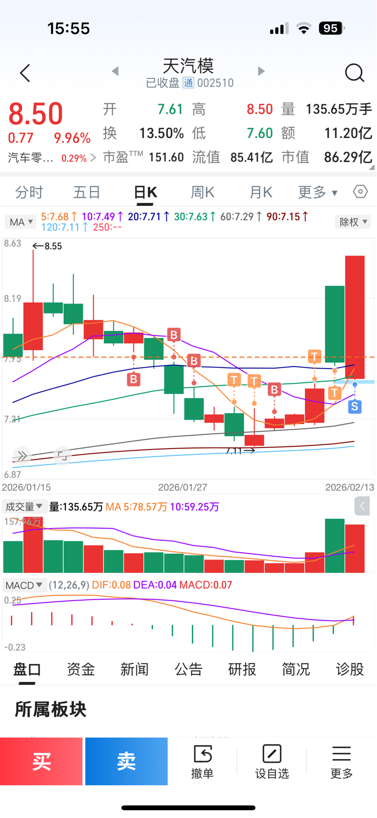 $天汽模(SZ002510)$ 不补缺口不进场,坚信自己的判断,感谢主力过年送的大红包