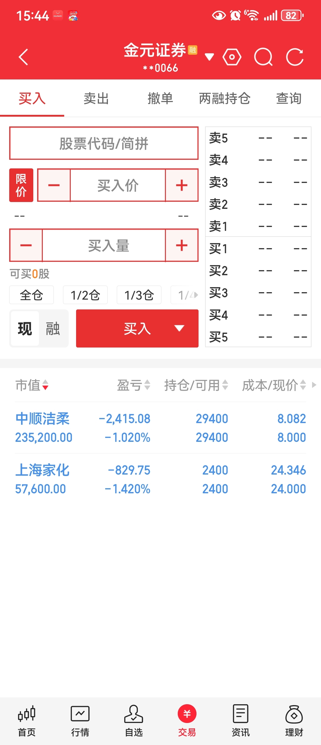 $中顺洁柔(SZ002511)$ $上海家化(SH600315)$ 持仓三胎第2天。