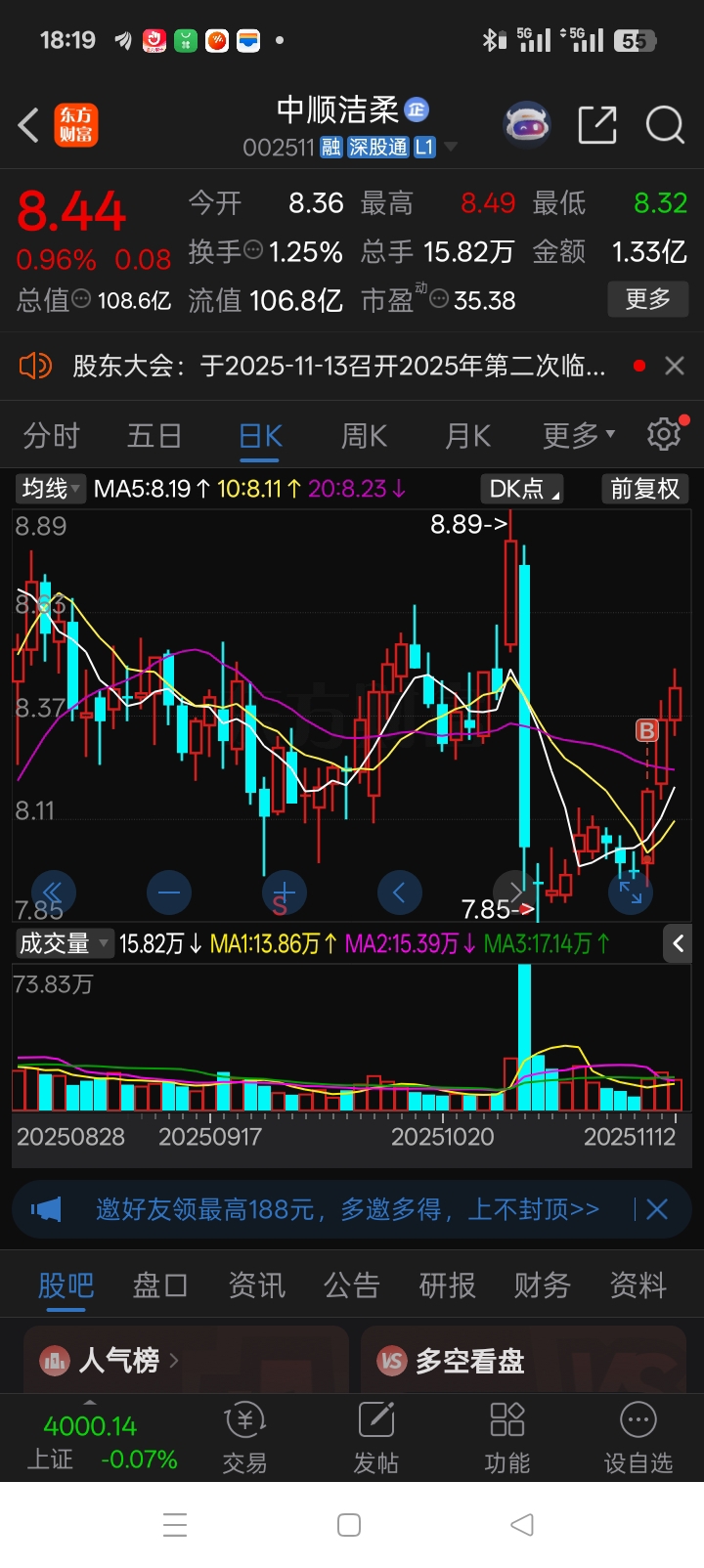 $中顺洁柔(SZ002511)$ 小步缓慢上扬,走出上升趋势,科技上涨暂缓,春节消费行情,叠加业绩改善和散户持续减少,不到15元一股不卖!