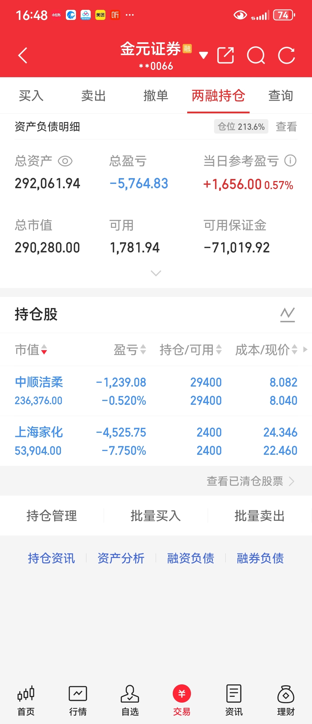 持仓三胎第27个交易日。$中顺洁柔(SZ002511)$ $上海家化(SH600315)$