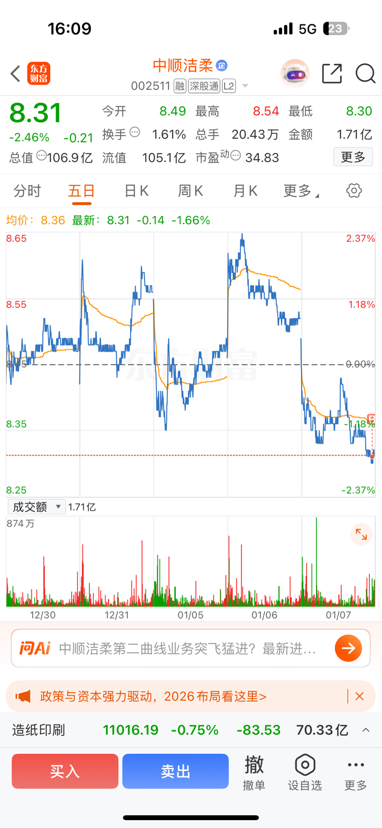 $中顺洁柔(SZ002511)$ 尾盘进货,明天准时卖出