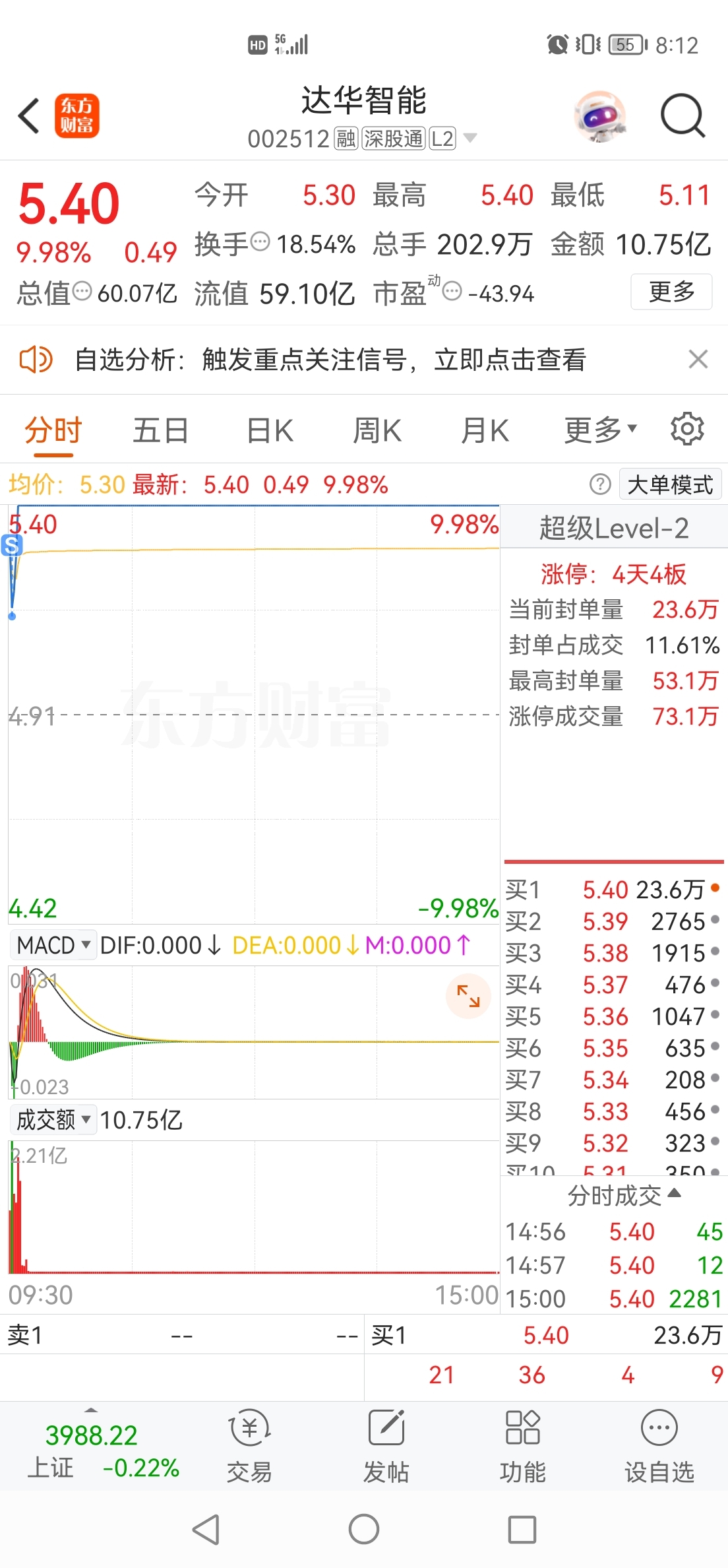 $达华智能(SZ002512)$ 赚3个点知足了,谢谢主力,祝留下的发大财。