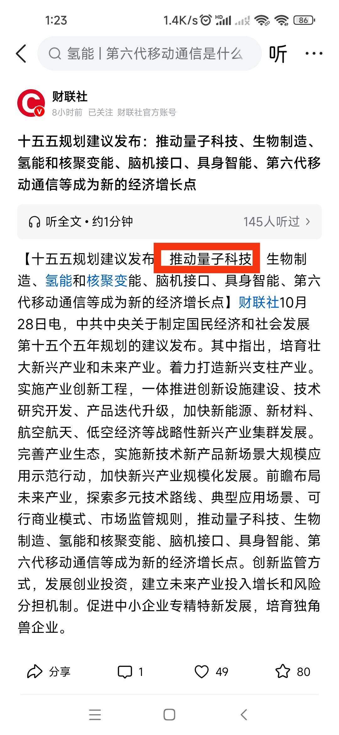 $达华智能(SZ002512)$ 十五五规划昨晚上发第一就是量子科技