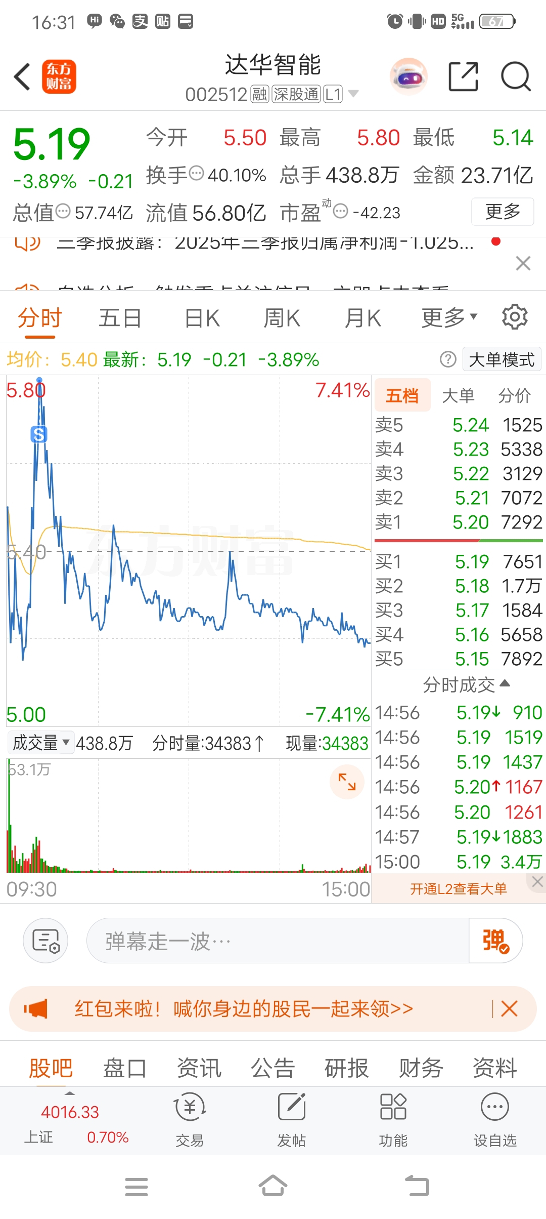 $达华智能(SZ002512)$ 走了,祝留下的朋友发大财。