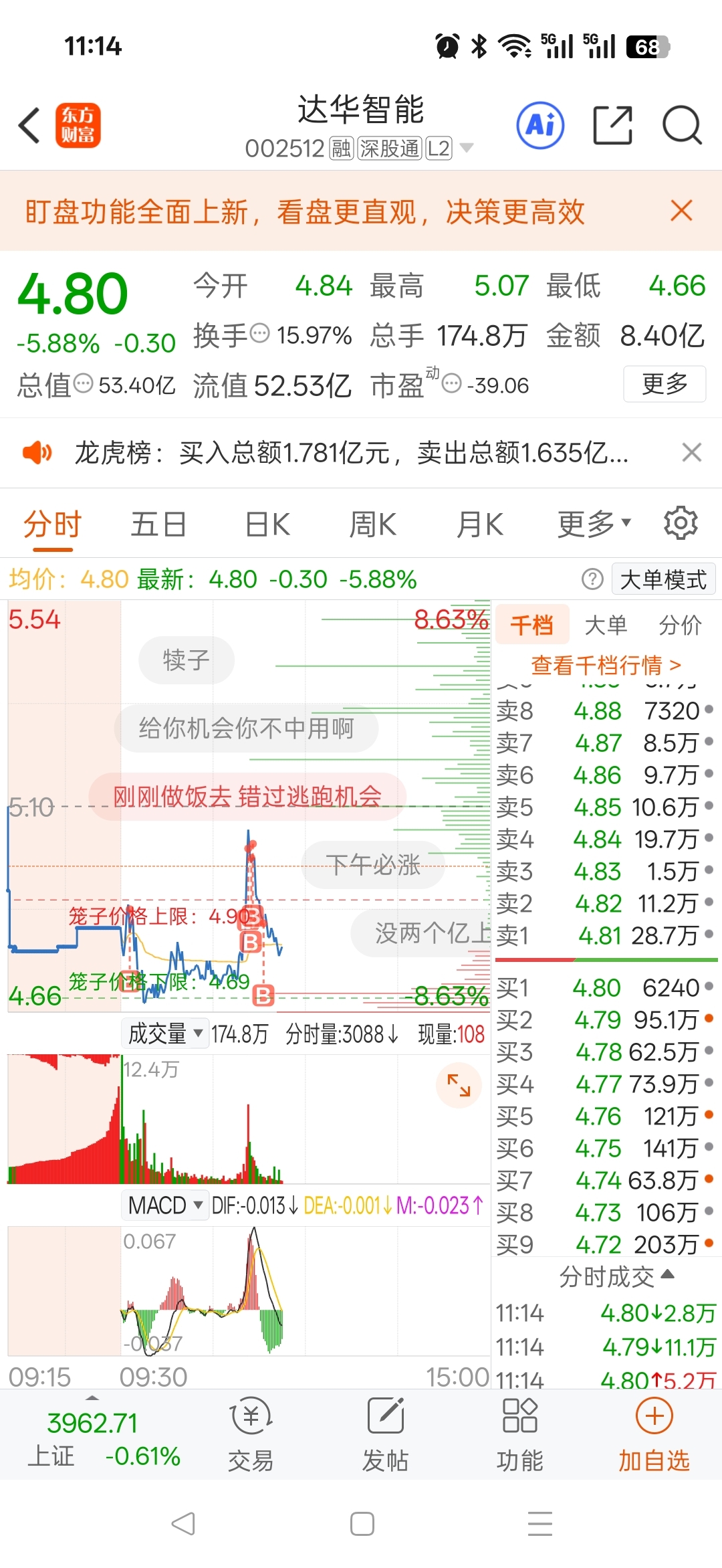 $达华智能(SZ002512)$ 兄弟们,不好意思,被我买崩了!
