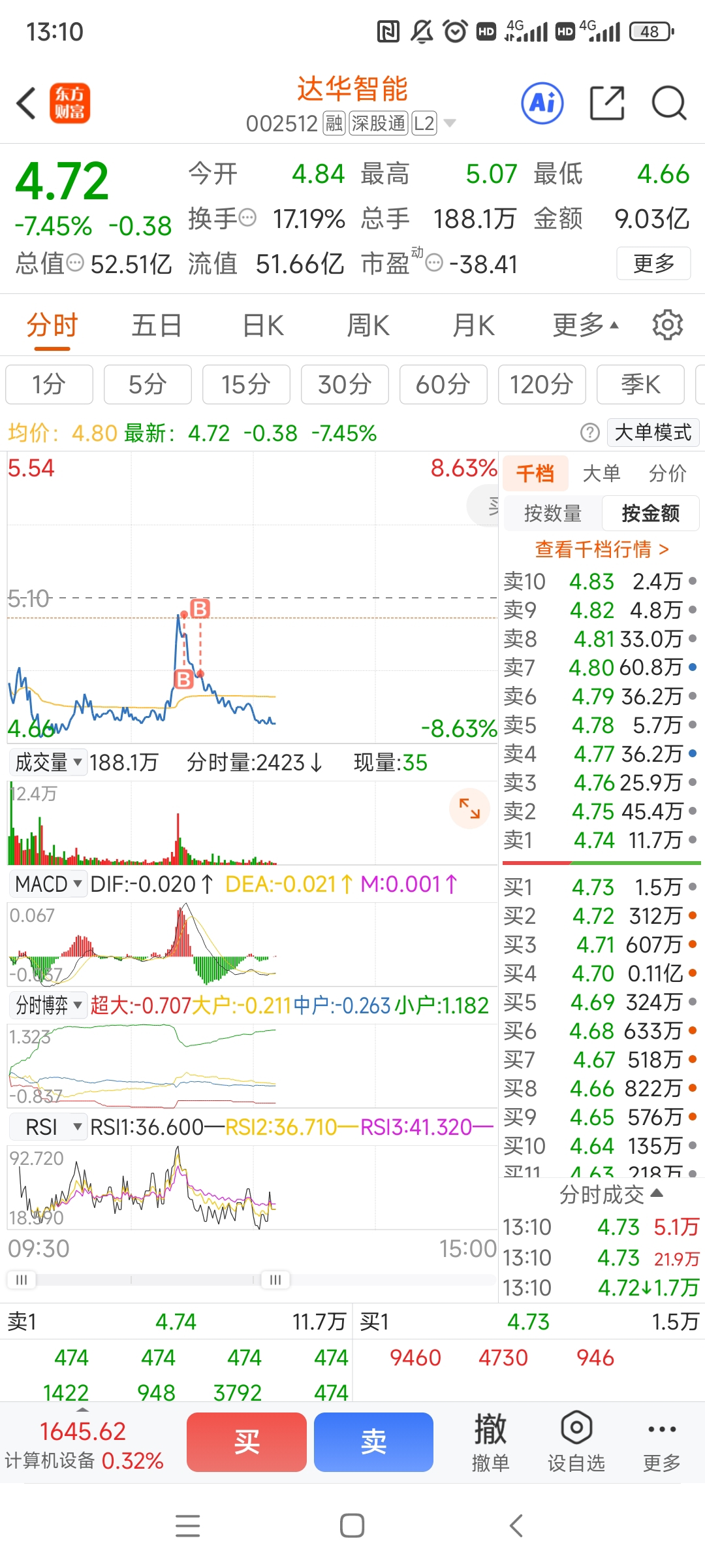 $达华智能(SZ002512)$ 9成仓位买到最高点,第二次补了一成仓位在-4,再做的各位应该没有比我更牛逼的吧