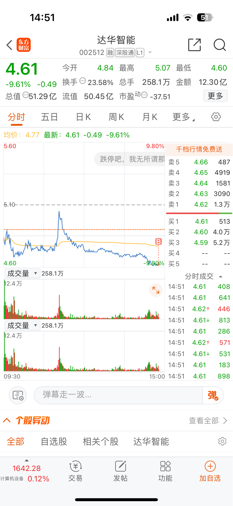 $达华智能(SZ002512)$  给老子惹毛了,补个仓位先