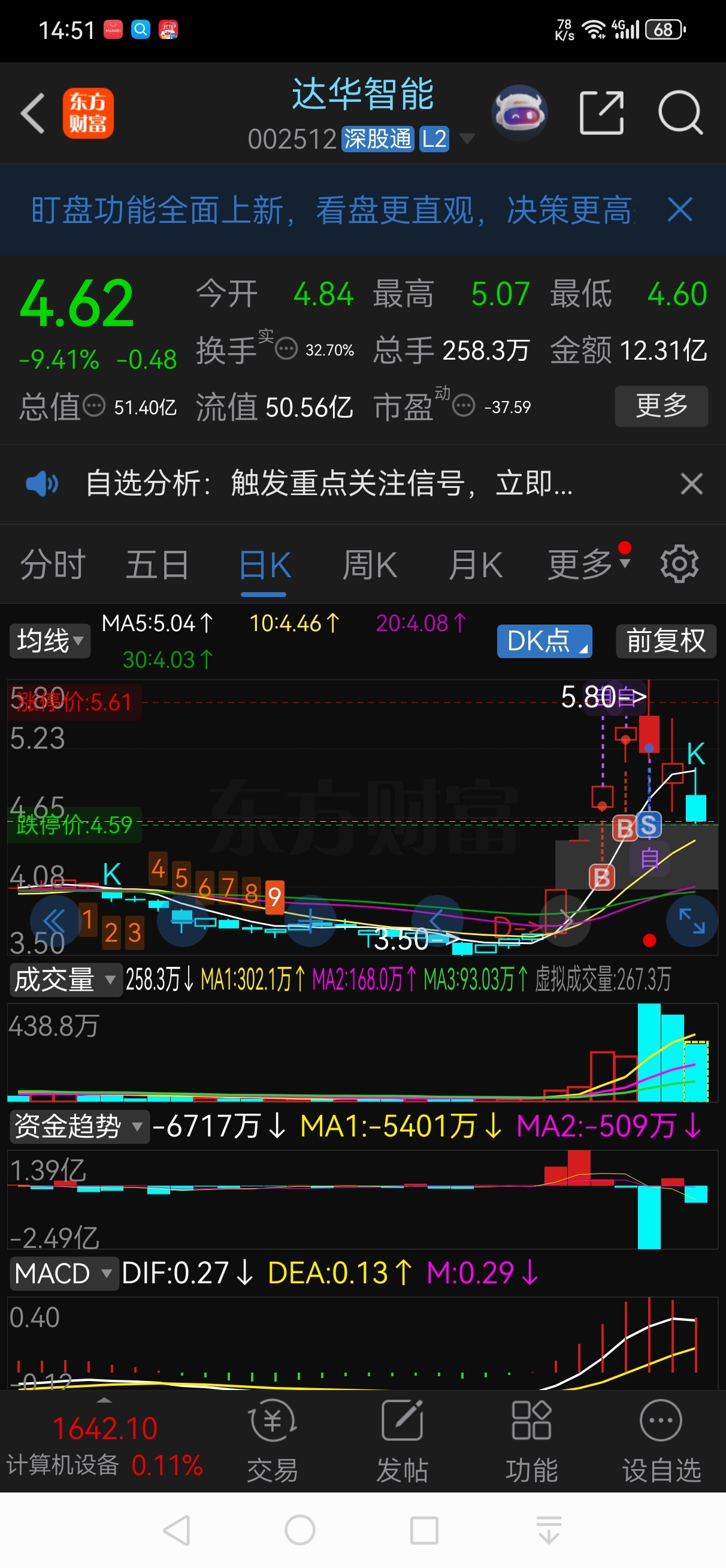 $达华智能(SZ002512)$ 昨天进去的又套了