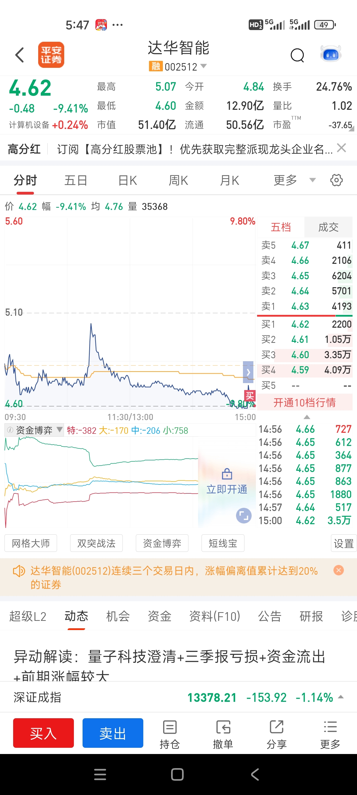 $达华智能(SZ002512)$ 尾盘跑步进场