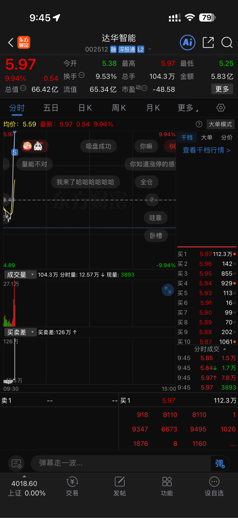 $达华智能(SZ002512)$ 潜伏三天天天挂涨停板,今天卖出去了