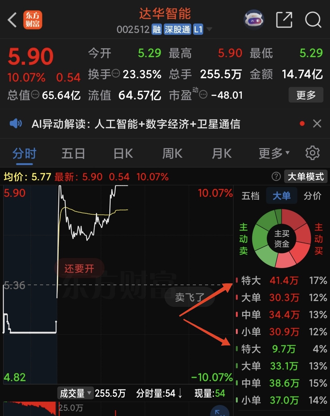 几天的洗盘,目的是更高远的价,特大单净买入30多万。