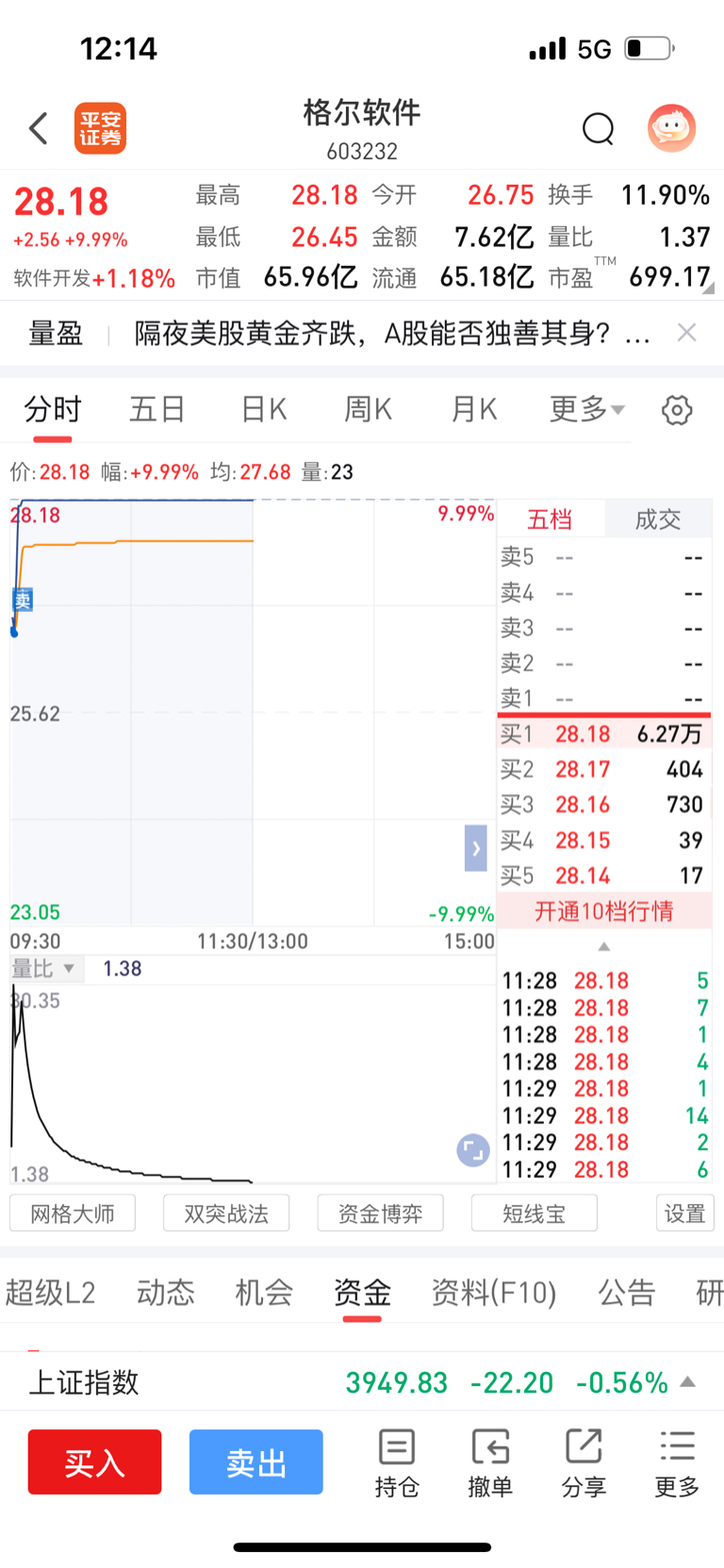 早上开盘卖你不成功,把格尔卖了出来接你亏大