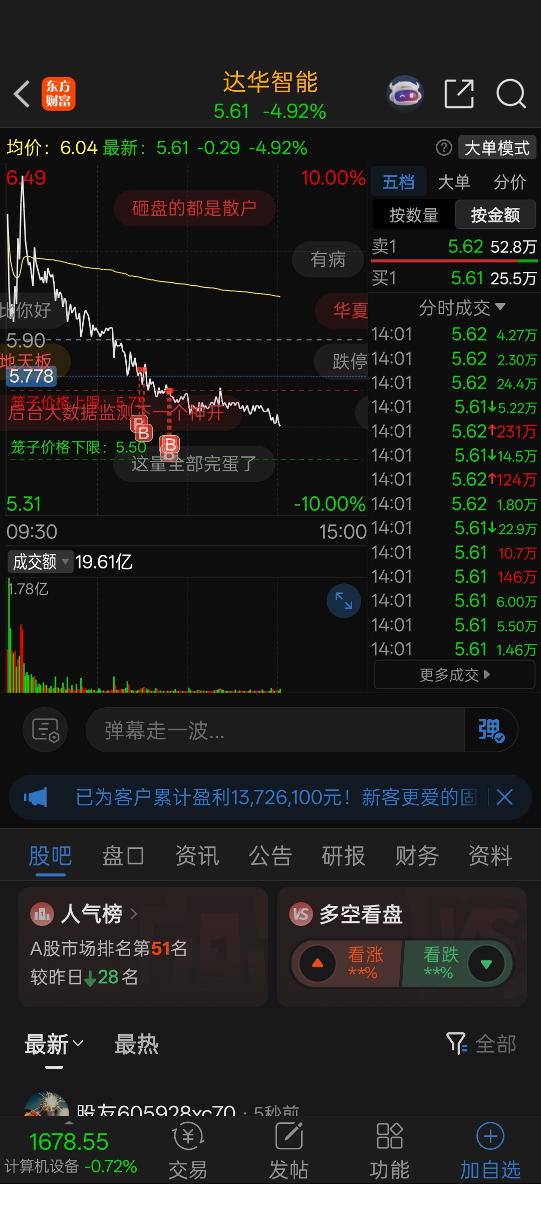 温馨提示: 1.根据《证券法》规定,禁止编造、传播虚假信息或者误导性信息,扰乱证券市场;2.用户在本社区发表的所有资料、言论等仅代表个人观点,与本网站立场无关,不对您构成任何投资建议。用户应基于自己的独立判断,自行决定证券投资并承担相应风险。《东方财富社区管理规定》