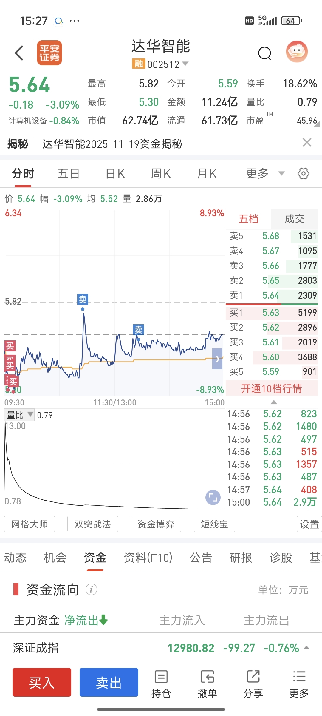 $达华智能(SZ002512)$ 今天不亏钱还好有你