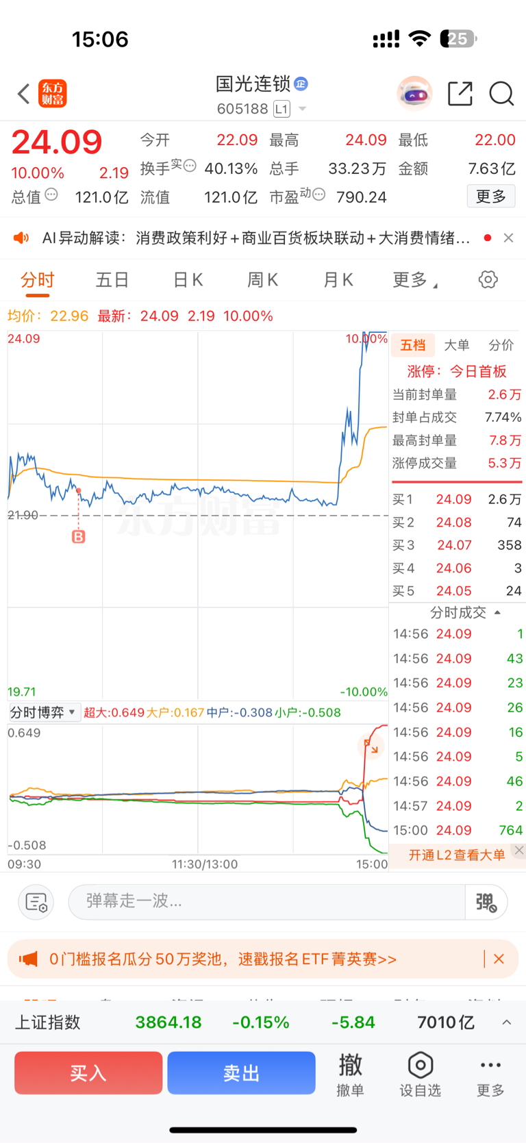 吃了两个涨停出来买了国光,祝还在的朋友涨不停,我也涨不停,大家一起发财