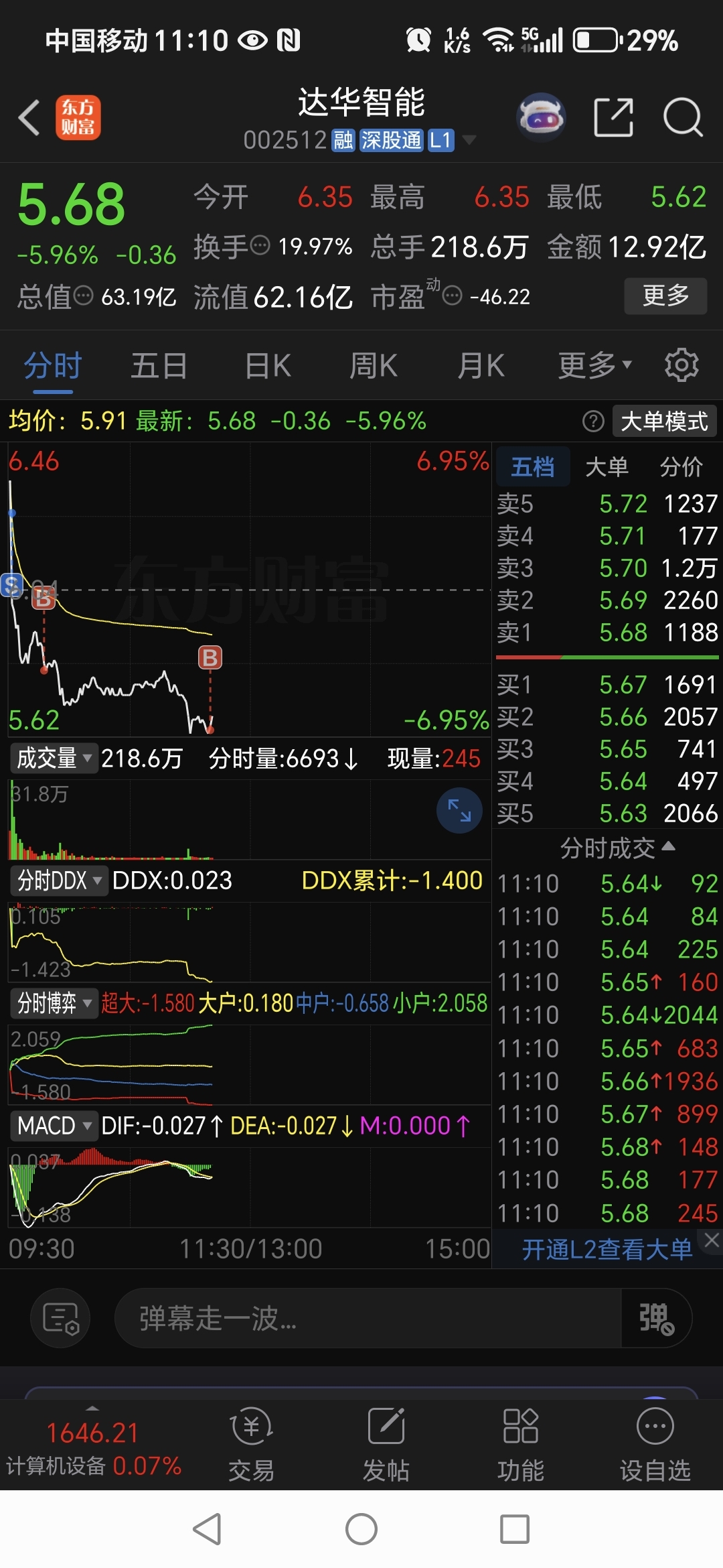 $达华智能(SZ002512)$ 天天做T谢谢主力给机会