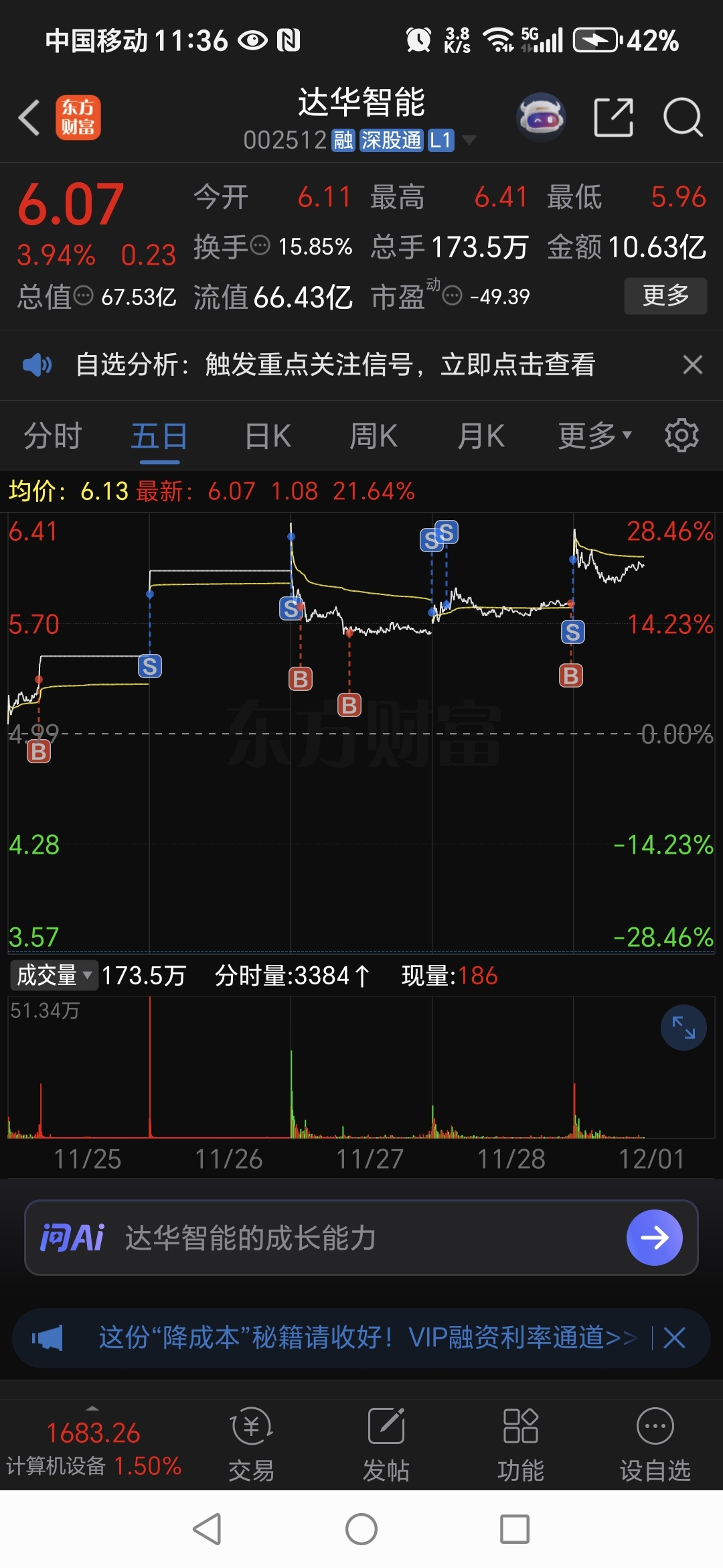$达华智能(SZ002512)$ 超短线就要快进快出!留底仓,天天可以做t